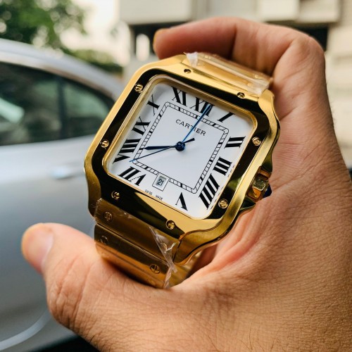 - glareproofed Magnify crystal Glass, with gold, WHITE dial, Date working and Roman figure.